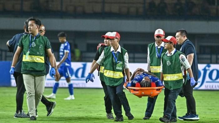 Melihat kondisi pemain yang terjatuh dan tak kunjung bangkit, tim medis official klub persib di panggil oleh wasit untuk segera memasuki lapangan untuk melakukan pemeriksaan awal.