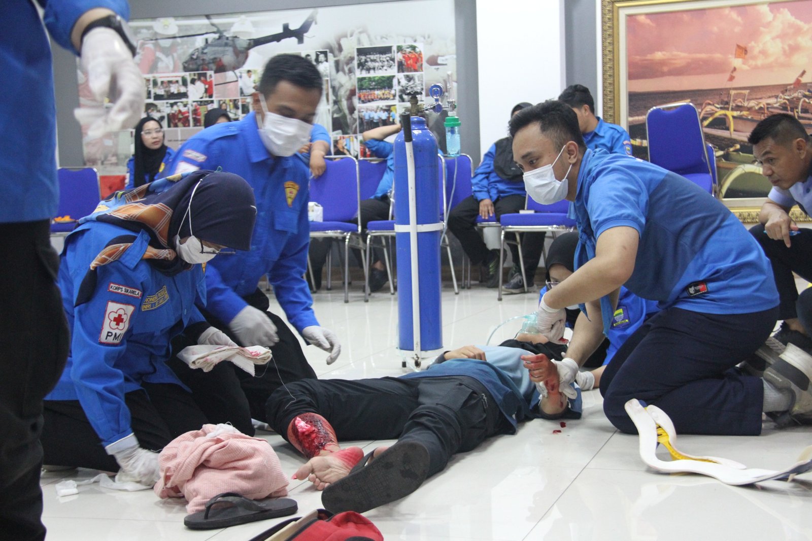 Kegiatan ini bertujuan untuk memperbarui pengetahuan dan keterampilan para relawan dalam memberikan Pelayanan Pertolongan Pertama dan Ambulans secara cepat, tepat, dan aman sesuai dengan standar terbaru dari PMI. Materi yang diberikan meliputi Perdarahan dan Syok, penanganan cidera otot rangka, hingga kasus henti napas,henti jantung (CPR), sampai proses evakuasi darurat.